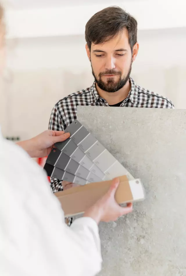 Approx. 30-35% water (by weight of material) is required for mixing. For better results, mixing should be preferably done with mechanical mixer/stirrer. Mixing would normally take about 3-5 minutes. The material should be applied within 2 hours of preparation. Ideally the thickness of Putty (including 2 coats) should not exceed 2mm. The time gap of 4 hours between two coats should be kept.